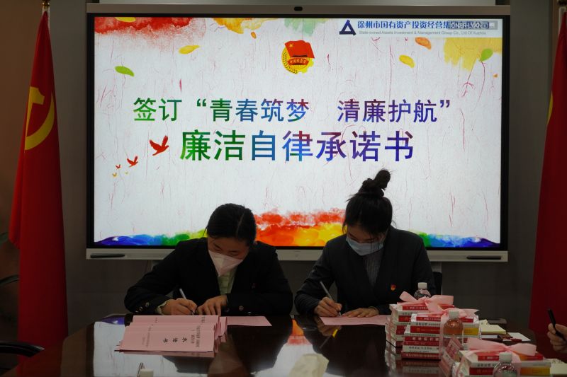 團委書記與各直屬團組織負責人共同在廉潔自律承諾書上簽字,承諾將積極弘揚社會主義核心價值觀,在青年學廉、育廉、倡廉、促廉工作中做“勤廉國投”的擁護者、踐行者、宣傳者、監(jiān)督者,在實踐中匯聚勤廉國投建設的青春合力。