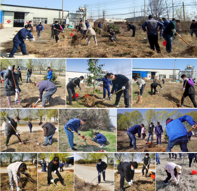 活動(dòng)現(xiàn)場,大家干勁十足、分工協(xié)作、密切配合,明確清理區(qū)域后,就投身到雜草清理工作中,一派火熱忙碌景象,不一會(huì)兒,土地就變得干凈平整。緊接著大家更換工具,拿上鐵锨、鋤頭,刨坑栽樹,揮鍬鏟土、培實(shí)新土、堆起圍堰、提水澆灌……28株杏樹、桂樹迎風(fēng)挺立。