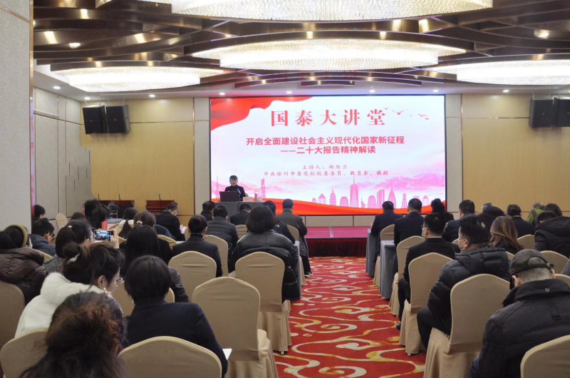 2023年2月15日,國(guó)泰投資公司黨總支開展《國(guó)泰大講堂》活動(dòng),邀請(qǐng)市委黨校鄭歷蘭教授作專題宣講。鄭歷蘭教授緊扣“開啟全面建設(shè)社會(huì)主義現(xiàn)代化國(guó)家新征程”主題,通過(guò)理論講解、實(shí)例舉證對(duì)黨的二十大報(bào)告進(jìn)行了全面解讀和深入闡釋。在精彩紛呈的宣講中,參加學(xué)習(xí)的70余名黨員干部紛紛表示,學(xué)習(xí)宣傳貫徹黨的二十大精神,使得每位員工從中汲取了無(wú)盡的思想偉力,并最終將指導(dǎo)我們的工作實(shí)踐,讓我們的事業(yè)向前走得更快更遠(yuǎn)。