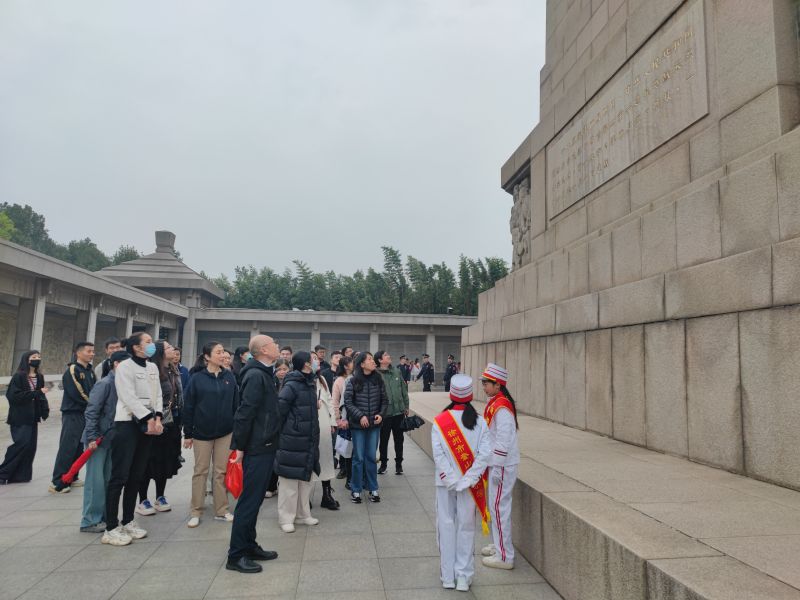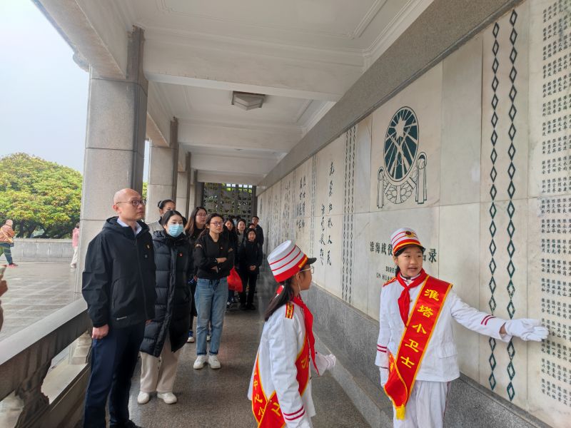 烈士陵園松柏靜哀、氣氛莊重,綿綿細(xì)雨中全體肅立,懷著沉重的心,默哀三分、敬獻(xiàn)鮮花。大家邁著緩慢的步伐繞塔一周,駐足瞻仰塔基上的場(chǎng)景浮雕,當(dāng)年淮海戰(zhàn)役壯觀的場(chǎng)面和戰(zhàn)士們視死如歸的氣勢(shì)仿佛重現(xiàn)在眼前。在淮塔小衛(wèi)士的帶領(lǐng)和講解下,觀詳烈士名錄,懷想革命先輩們?cè)⊙獖^戰(zhàn)的歷史,不無感嘆革命先烈英勇無畏的壯舉。嚴(yán)守紀(jì)律、團(tuán)結(jié)奮戰(zhàn)、不怕犧牲、勇于奉獻(xiàn)的精神深深觸動(dòng)著在場(chǎng)的每一個(gè)人。