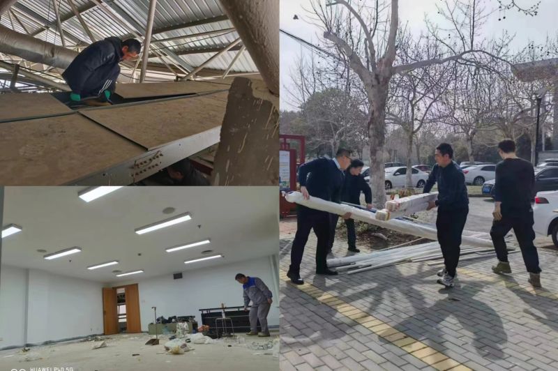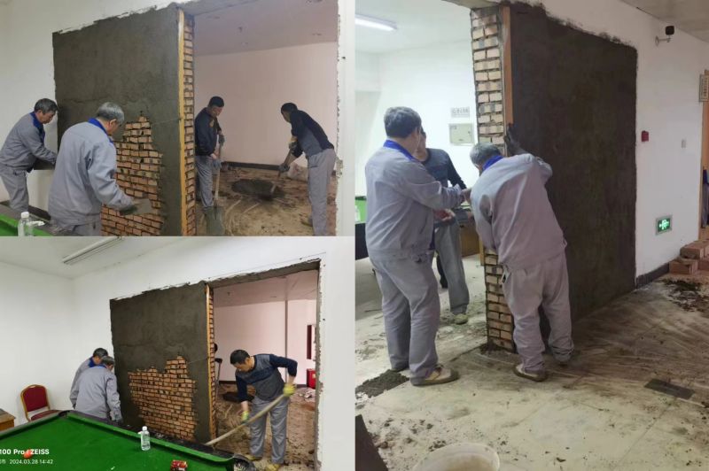 新辦公區(qū)分布在體育館主館1—3層,各樓層建筑結(jié)構(gòu)、房間戶型、施工方案均不同,在時間緊、任務重的情況下,工程維修負責人第一時間召集相關(guān)責任主體對施工方案進行全面細致地評估研判,在做好深化圖紙、確定施工投入材料及工藝效果、落實分項施工方案及技術(shù)措施保障等籌備工作的基礎上,確保人員及作業(yè)環(huán)境安全的前提下,組織工程人員6名、歷時5天,拆除廢棄配電柜,壘砌磚墻,刮膩噴漆,改造電路,鋪設空調(diào)電纜及排水管路,共裝修改造辦公用房11間;該工程若外包費用約8萬元,自行修繕改造費用僅約5萬,節(jié)省約3萬元、節(jié)省比率達到37.5%。華強資產(chǎn)公司以“能自主維修絕不外委”的工作理念,節(jié)支降耗,改善環(huán)境。