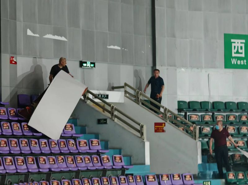 活動當天,全體黨員干部及部分不當班職工準時到達徐州體育館,按照預先分組進行任務分配,以主席臺為中心,向兩邊區(qū)域延伸進行地毯式清理。此次活動主要清理體育館內(nèi)部四周墻體,摘除過期廣告牌、鏟除墻面標簽及清理觀眾席衛(wèi)生死角等。