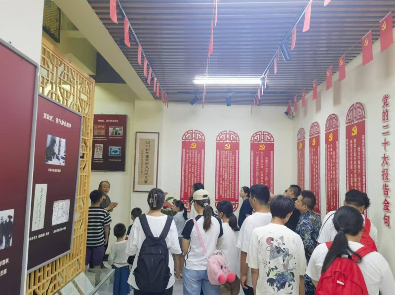 在原徐州書畫院書記、副院長晁岱衛(wèi)同志的帶領(lǐng)下,青少年兒童們參觀了蘇悅黨史陳列館。通過新四軍四師在邳睢銅地區(qū)戰(zhàn)斗的史料圖片、一級八一勛章、一級解放勛章、一級獨(dú)立自由勛章等蘊(yùn)含歷史內(nèi)涵的實(shí)物陳列品,直觀了解新四軍將士用鮮血和生命鍛造的偉大的新四軍精神;通過講述黨的光輝歷程,分享紅色故事,厚植愛黨、愛國、愛人民的情懷,讓紅色基因代代相傳。