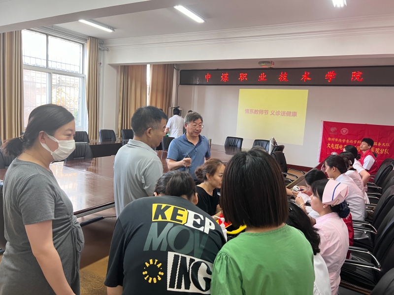 9月4日至9日,中心醫(yī)院專家團隊走進中煤職業(yè)技術(shù)學(xué)院、礦區(qū)第一中學(xué)、礦區(qū)第二小學(xué)、八村幼兒園,為教師們檢測了血糖、血壓、脈氧、心率等項目,醫(yī)療專家根據(jù)檢測結(jié)果給予針對性地健康指導(dǎo)及宣教,并為教師們進行了答疑解惑??祻?fù)科醫(yī)務(wù)人員針對教師們的肩周炎、頸椎病等職業(yè)病進行了肩頸操指導(dǎo),并使用中頻治療儀為教師們進行肩頸理療,為他們消除病痛。消化肛腸科專家用幽默風(fēng)趣、非常接地氣的語言為教師們帶來了一堂關(guān)于消化道腫瘤防治知識的健康講座。教師節(jié)義診活動受到了各校教師們的歡迎,他們說這是一份充滿溫度的教師節(jié)“禮物”,既溫暖又貼心!