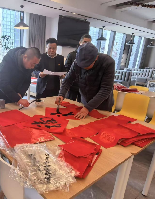 “歲歲平安如意到,年年吉祥福星高”“新春福旺鴻運開,佳節(jié)吉祥如意來”……活動中,江蘇省書法家協(xié)會會員胡樹森老師揮毫潑墨、筆走龍蛇、氣韻生動,一幅幅平安和諧、寓意吉祥的春聯(lián)和“?!弊周S然紙上,職工們邊欣賞、邊拍照,手持春聯(lián),喜笑顏開。大家互相討論著各副春聯(lián)的蘊意,紛紛表示這是送到心坎里的新春祝福,也給即將到來的新春增添了濃濃的年味。
