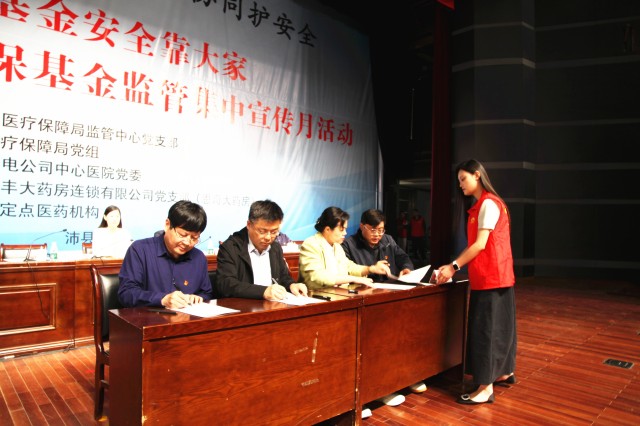 4月25日上午,徐州市醫(yī)療保障局監(jiān)管中心黨支部、沛縣醫(yī)療保障局黨組、江蘇益豐大藥房連鎖有限公司黨支部聯(lián)合大屯煤電中心醫(yī)院黨委,在大屯公司俱樂部聯(lián)合開展“醫(yī)?;鸢踩看蠹摇秉h建共建暨醫(yī)?;鸨O(jiān)管集中宣傳月活動。市醫(yī)保局監(jiān)管中心李巋處長、沛縣常務(wù)副縣長趙蓉、大屯煤電中心醫(yī)院黨委書記張心海及恩奇大藥房總經(jīng)理丁力等人出席活動。縣醫(yī)保局黨委書記、局長張婧主持會議,沛縣各醫(yī)療機(jī)構(gòu)共300余人參加活動。