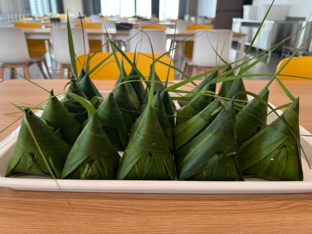 次日中午,集團工會在員工餐廳精心準(zhǔn)備了色彩繽紛的水果拼盤、香甜軟糯的蜜棗粽子,為集團員工送上節(jié)日祝福。大家圍坐在一起,一邊分享昨日包粽的趣事,一邊品嘗蜜粽鮮果,食堂里洋溢著歡聲笑語。
