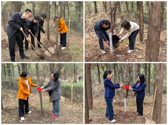 植樹活動環(huán)節(jié),黨員們紛紛寫下初心與承諾,懸掛在自己栽種的樹苗上?!耙痪涫难?,一生作答?!薄霸谄椒仓袌允?,在奉獻中閃光,不負胸前的黨員徽章。”……這些寄語如同一面面旗幟,飄揚在春風(fēng)中,激勵著大家在日常工作中踐行生態(tài)文明理念。