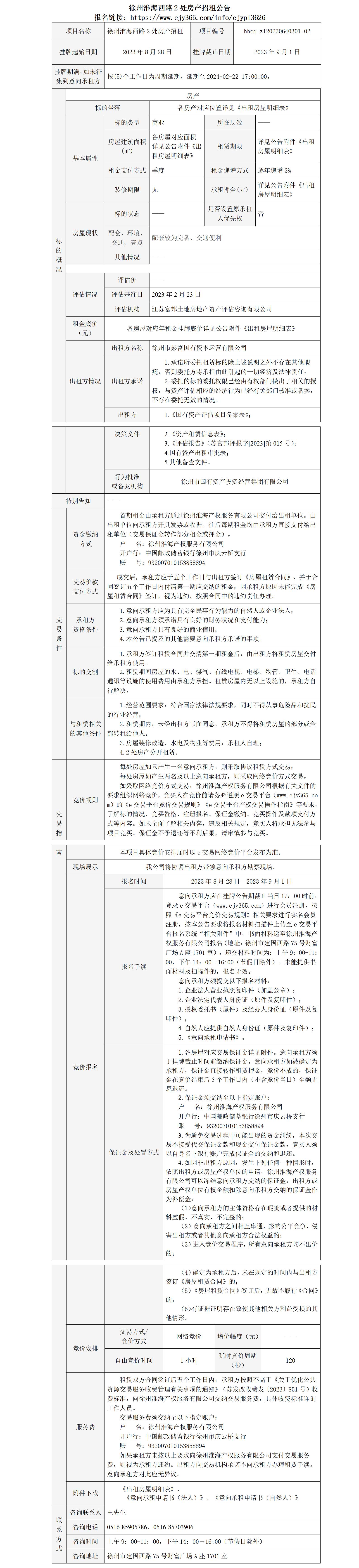 江蘇徐州云龍區(qū)中山南路漢御花園B座一層部分、二層部分、六層房產整體招租公告
