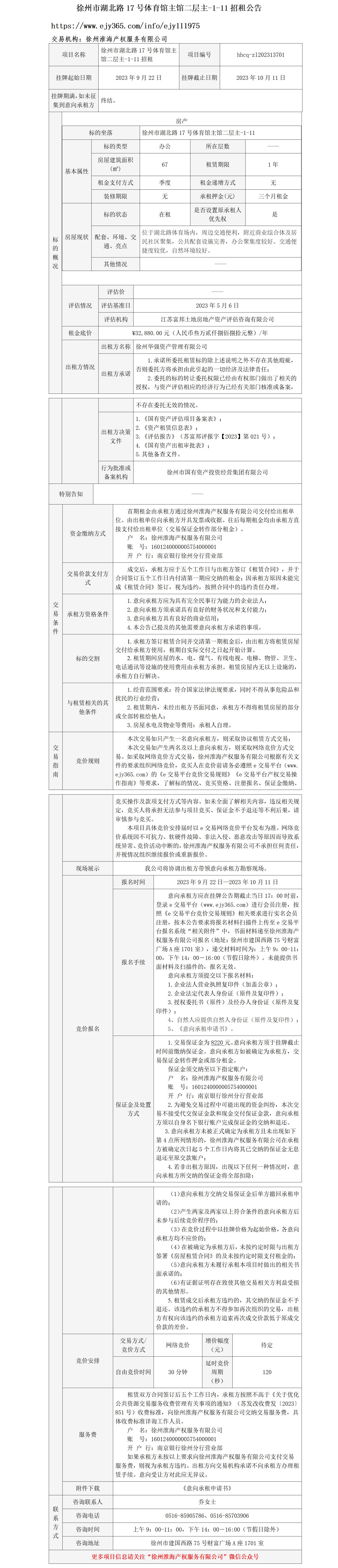 江蘇省徐州市云龍區(qū)中山南路65號輕工大樓1002招租公告