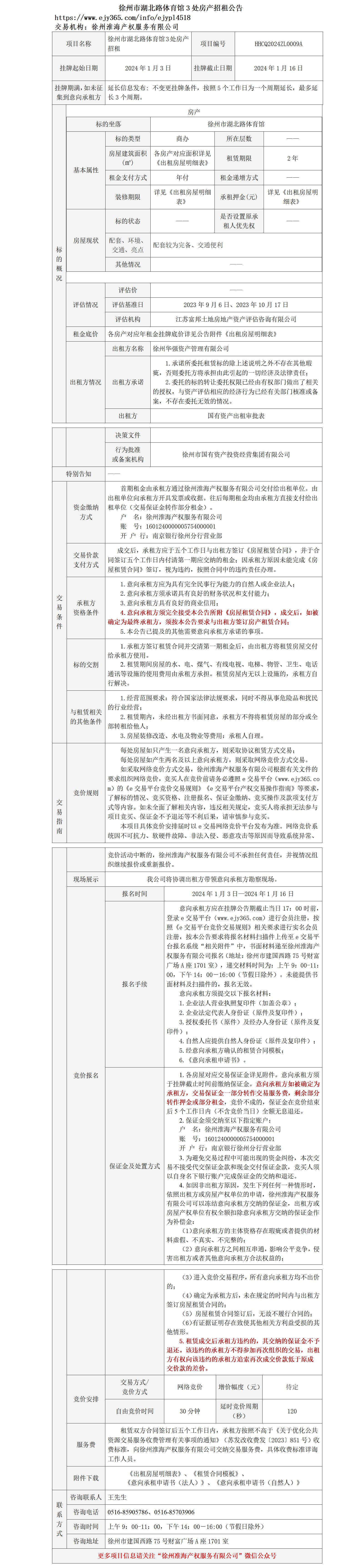 徐州市湖北路體育館3處房產(chǎn)招租公告