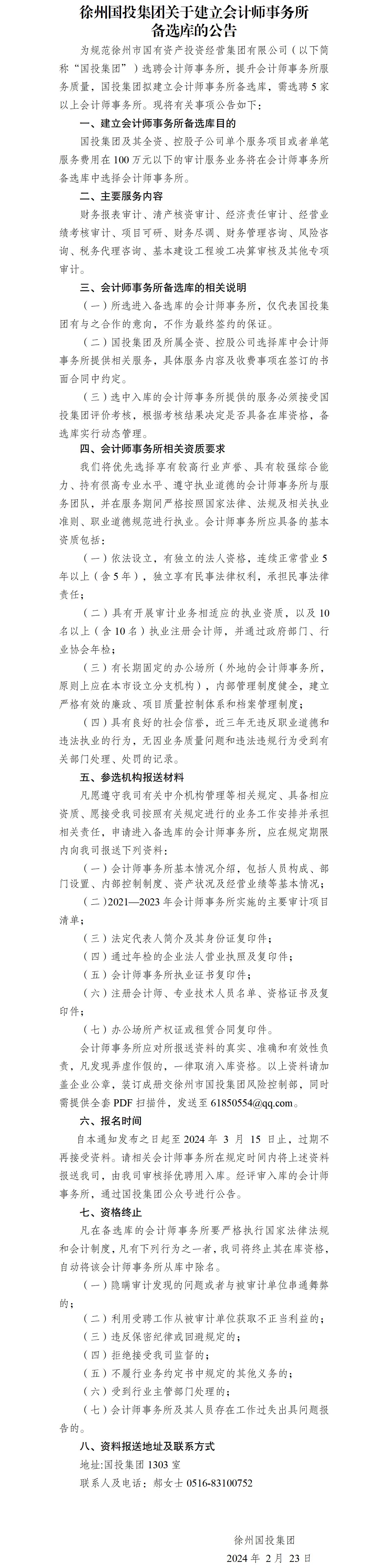 關(guān)于成立國(guó)投集團(tuán)會(huì)計(jì)師事務(wù)所備選庫(kù)的公告