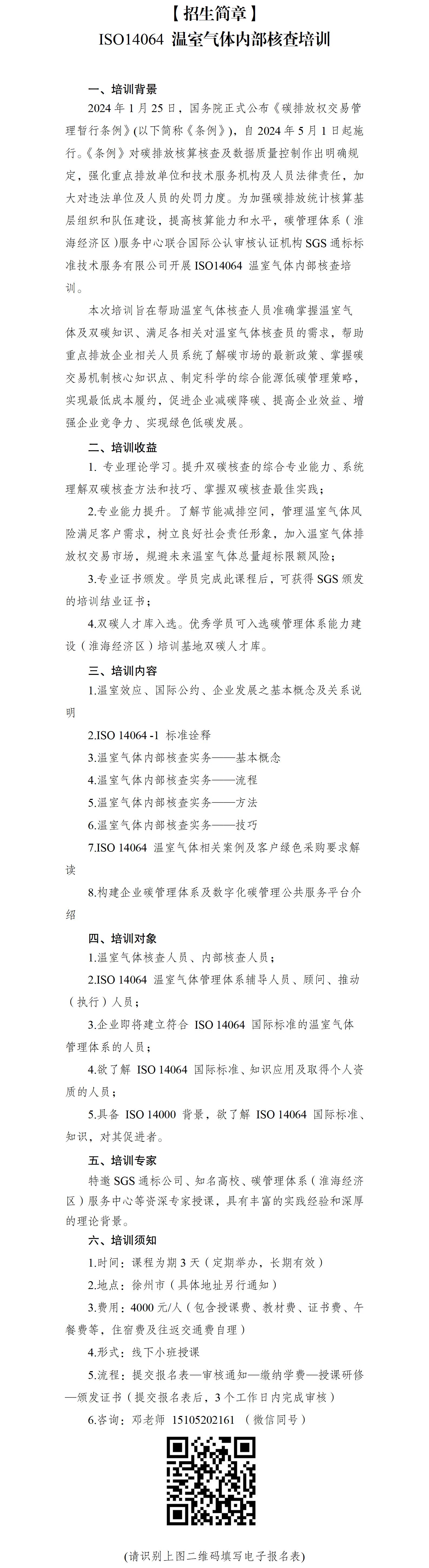【招生簡章】ISO14064 溫室氣體內(nèi)部核查培訓(xùn)