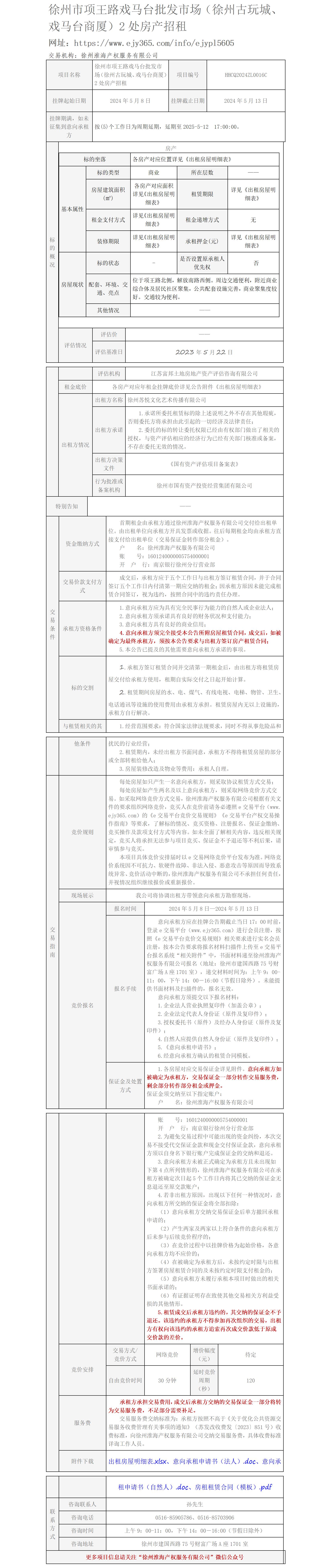 徐州市項王路戲馬臺批發(fā)市場(徐州古玩城、戲馬臺商廈)2處房產(chǎn)招租