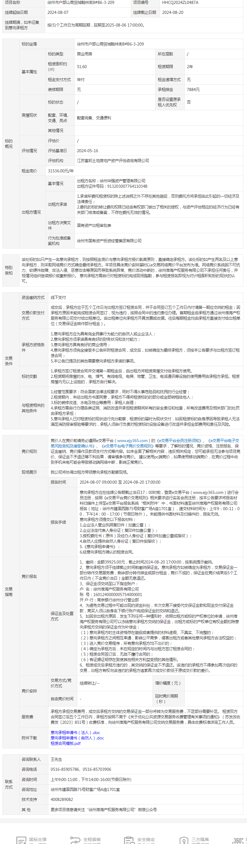 徐州市戶部山商貿(mào)城翰林街8#B6-3-209招租公告