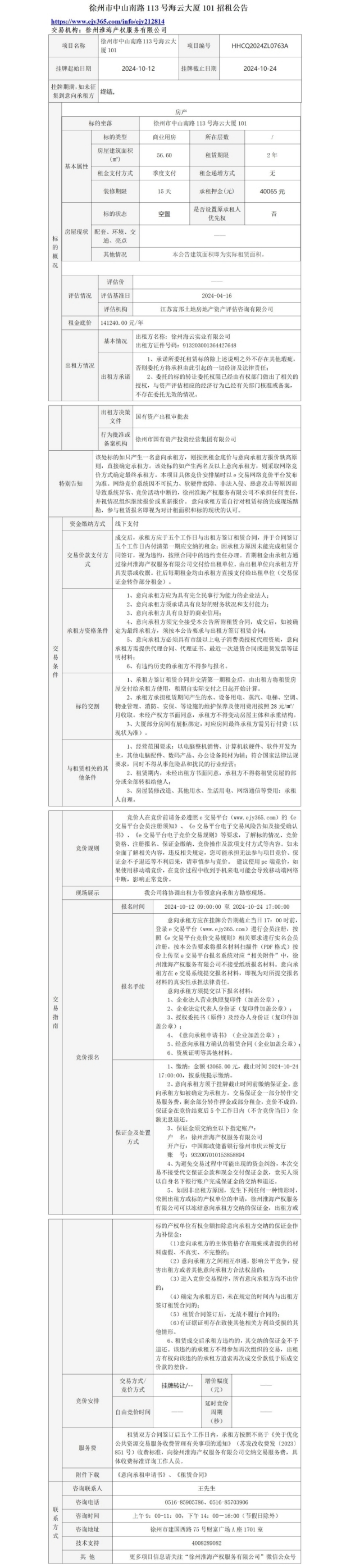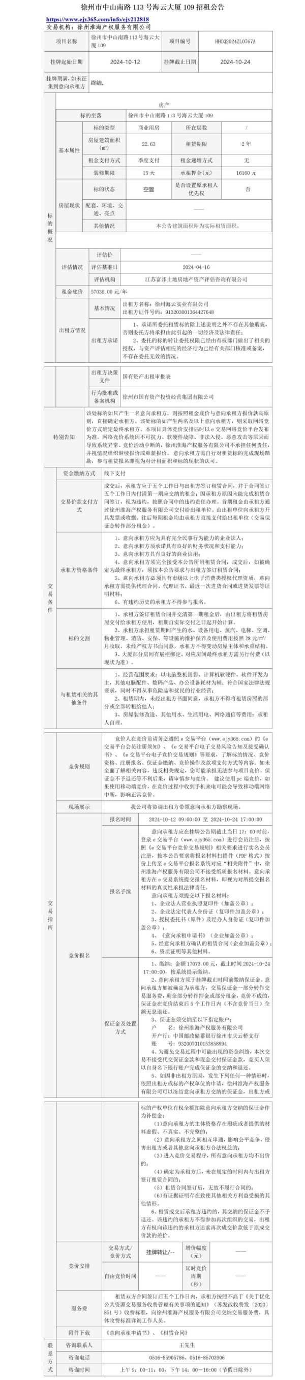 江蘇省徐州市云龍區(qū)中山南路65號(hào)輕工大樓1002招租公告