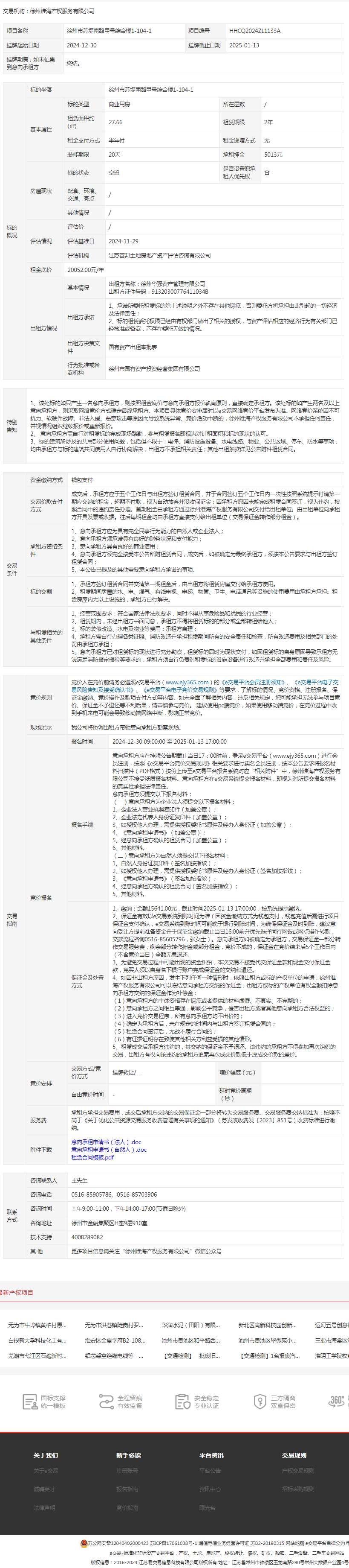 江蘇省徐州市云龍區(qū)中山南路65號輕工大樓1003-1004招租公告