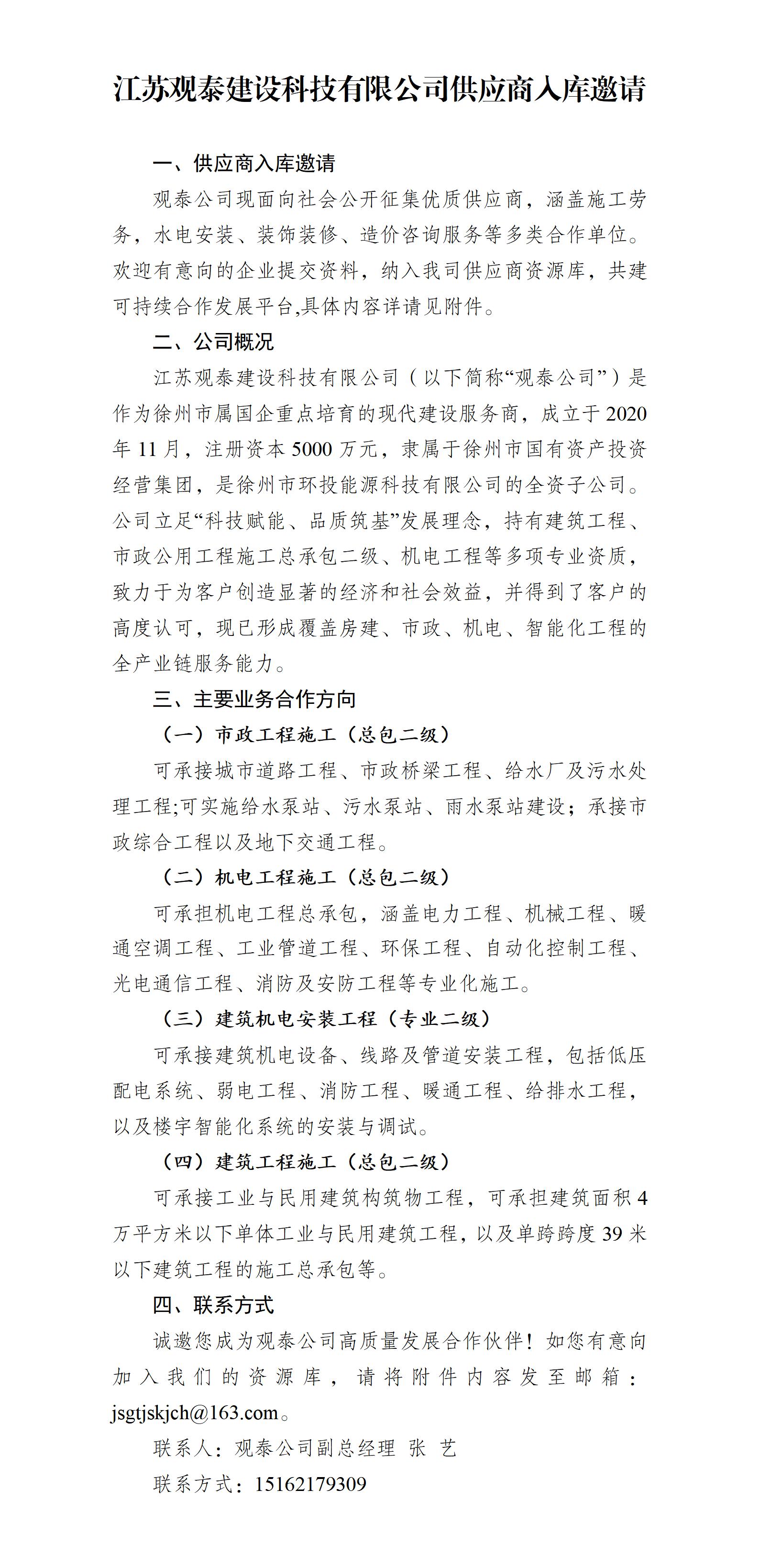 江蘇觀泰建設(shè)科技有限公司供應(yīng)商入庫邀請(qǐng)