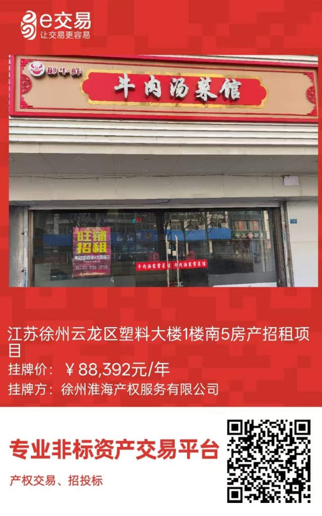 江蘇徐州云龍區(qū)塑料大樓1樓南1北部分房產(chǎn)招租公告