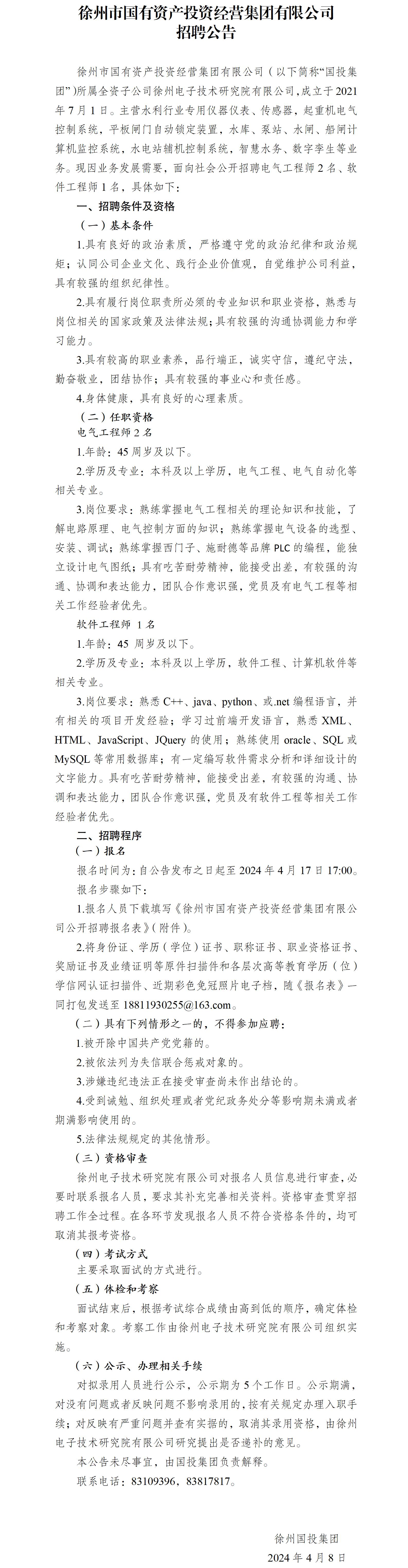 徐州市國有資產(chǎn)投資經(jīng)營集團(tuán)有限公司所屬企業(yè)公開招聘公告