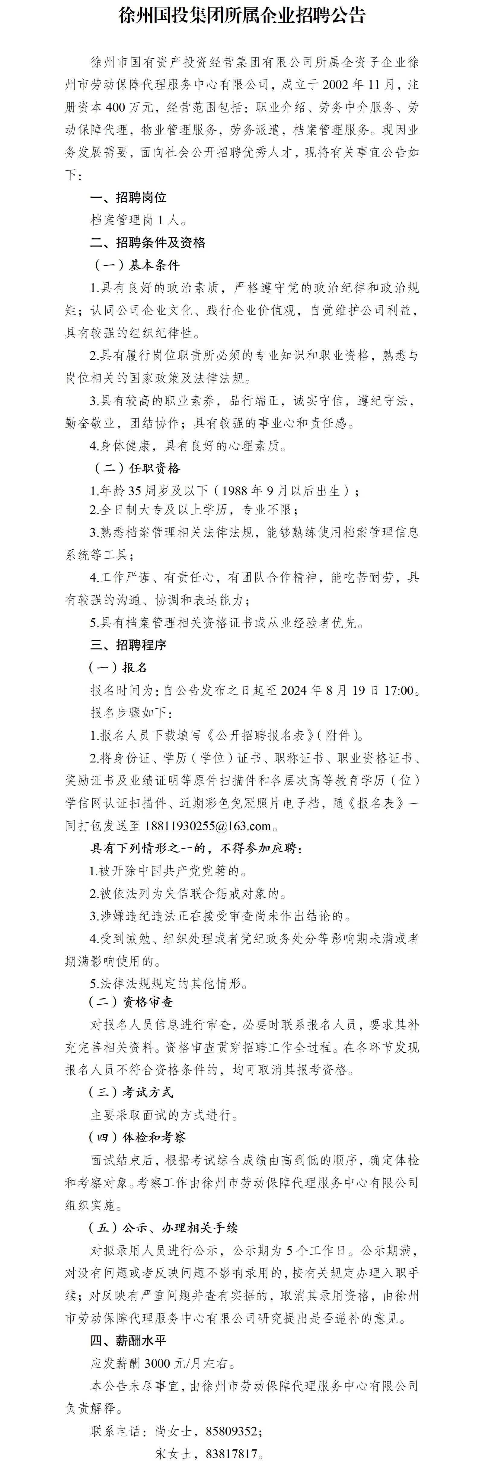 徐州市國(guó)有資產(chǎn)投資經(jīng)營(yíng)集團(tuán)有限公司所屬企業(yè)公開(kāi)招聘公告
