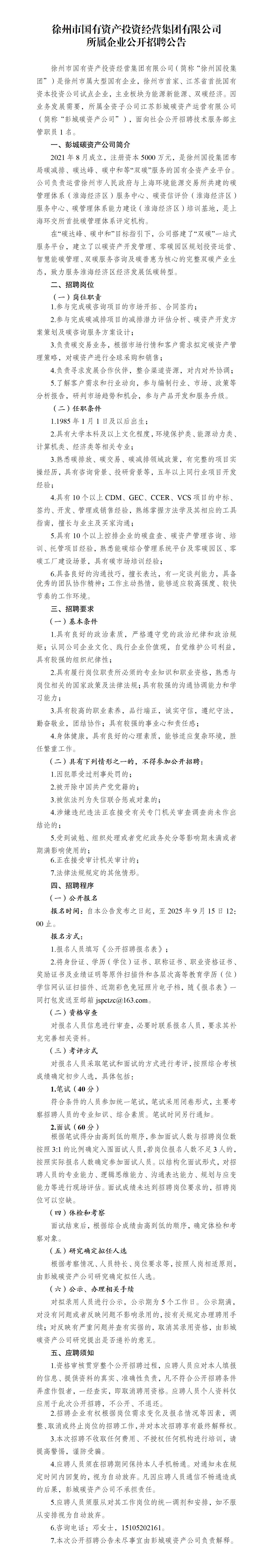 徐州市國有資產(chǎn)投資經(jīng)營集團有限公司所屬企業(yè)公開招聘公告