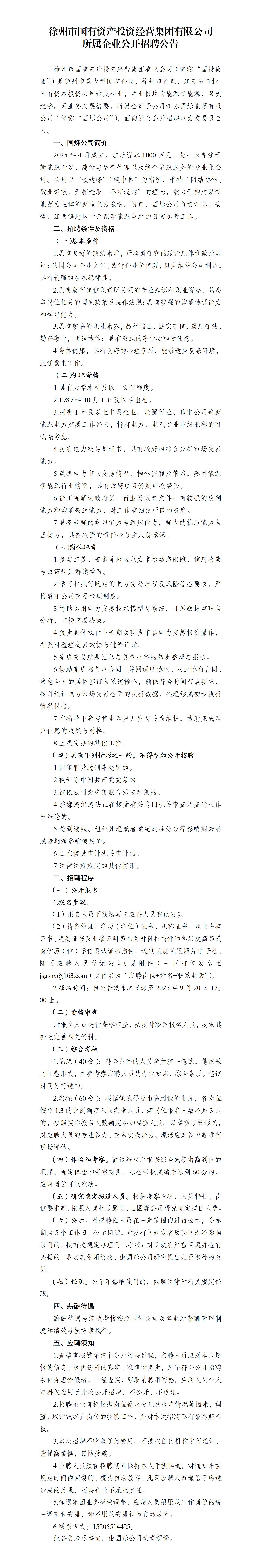 徐州市國(guó)有資產(chǎn)投資經(jīng)營(yíng)集團(tuán)有限公司所屬企業(yè)公開(kāi)招聘公告