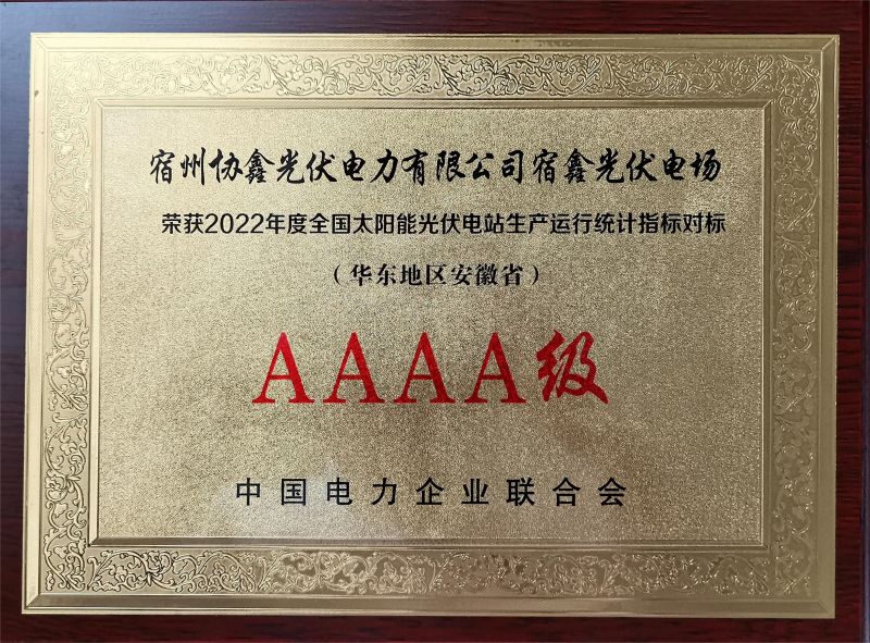 能源集團(tuán)所屬宿州電站榮獲“2022年度全國(guó)太陽(yáng)能光伏電站生產(chǎn)運(yùn)行統(tǒng)計(jì)指標(biāo)對(duì)標(biāo)(華東地區(qū)安徽?。?A級(jí)電站”稱號(hào)