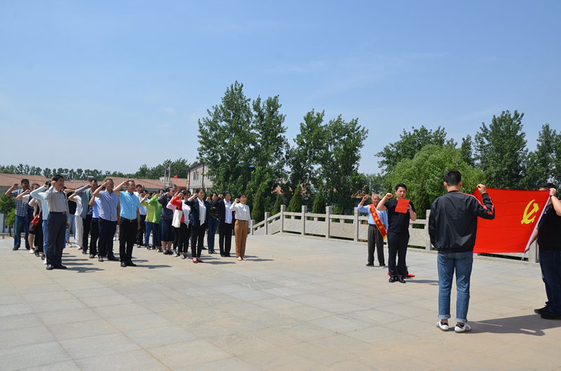 活動(dòng)當(dāng)天,集團(tuán)公司機(jī)關(guān)黨支部還組織黨員前往沛縣烈士陵園開(kāi)展了主題黨日活動(dòng)。在雄偉莊嚴(yán)的烈士紀(jì)念碑前,全體人員莊嚴(yán)肅立,向革命烈士默哀致禮,并向烈士紀(jì)念碑敬獻(xiàn)花圈。表達(dá)對(duì)革命烈士的敬仰和深切緬懷之情。在莊昱的領(lǐng)誓下,大家面對(duì)黨旗、面對(duì)烈士紀(jì)念碑重溫了入黨誓詞。