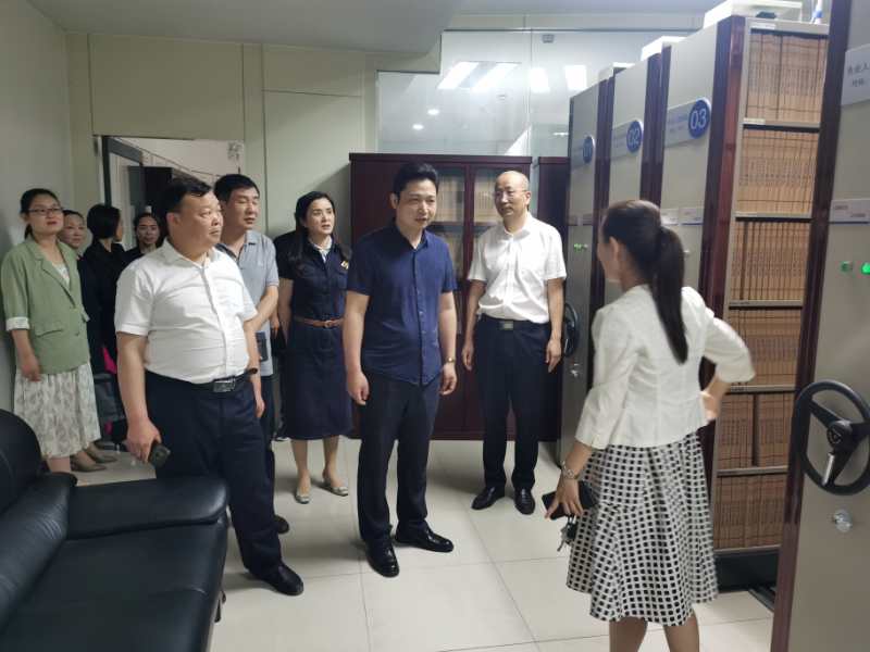 調(diào)研中,莊昱一行實(shí)地查看了C區(qū)綜合業(yè)務(wù)柜臺(tái)、代理業(yè)務(wù)柜臺(tái)、B區(qū)檔案接收室和地下檔案庫(kù)房等辦公場(chǎng)所,并邊查看邊詳細(xì)聽取勞代中心負(fù)責(zé)人對(duì)各部門工作開展情況的介紹。在調(diào)研座談會(huì)上,勞代中心負(fù)責(zé)人匯報(bào)了企業(yè)基本情況、經(jīng)營(yíng)指標(biāo)完成情況、經(jīng)營(yíng)情況、黨建工作情況,并對(duì)開展“一違三亂兩高兩低”自查情況作了專題匯報(bào)。