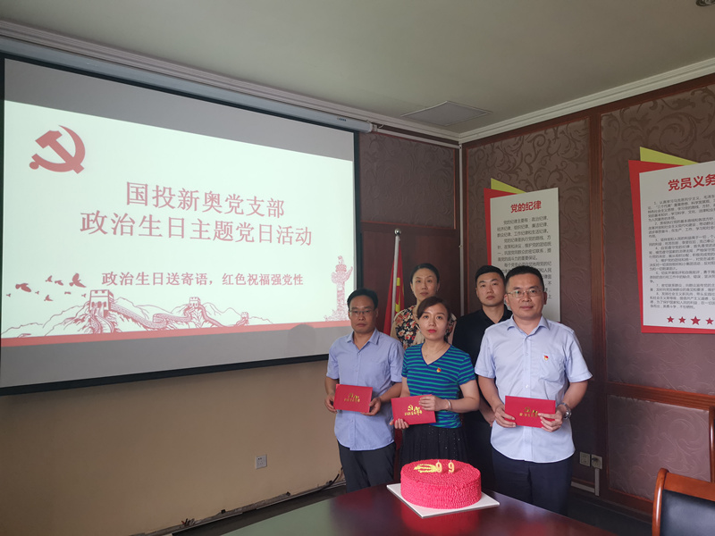 為進(jìn)一步強化黨員的身份意識、責(zé)任意識、黨性意識,進(jìn)一步增強黨員“政治儀式”感,7月8日下午,徐州國投新奧黨支部組織召開了“政治生日送寄語、紅色祝福強黨性”主題黨日活動,為國投新奧公司全體5名黨員集體過政治生日。