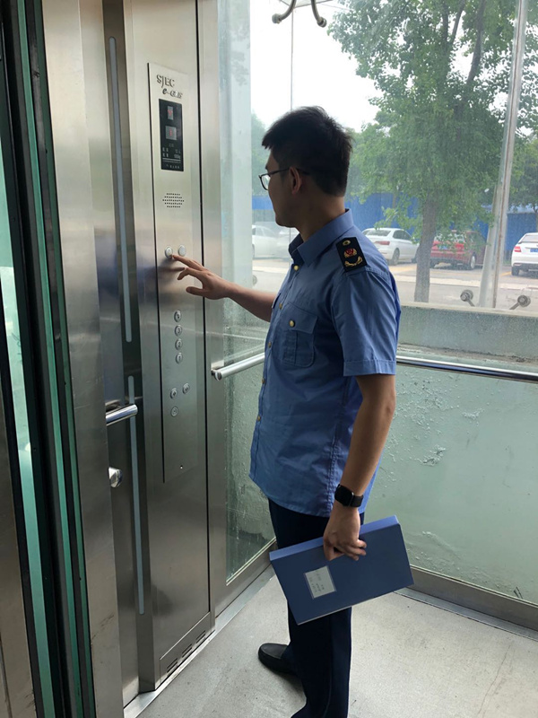 惠洪光副局長一行先后對市場8部電梯及17臺叉車進行檢查,檢查主要關注:(1)設備是否按要求年審;(2)電梯是否按要求進行定期維保和記錄;(3)所有叉車是否有牌照;(4)操作員是否有操作證。經過檢查,特檢科人員對新黃河建材市場所做的工作給予充分肯定,同時要求對新來業(yè)戶叉車未辦牌照的及時督促,協(xié)助辦理。