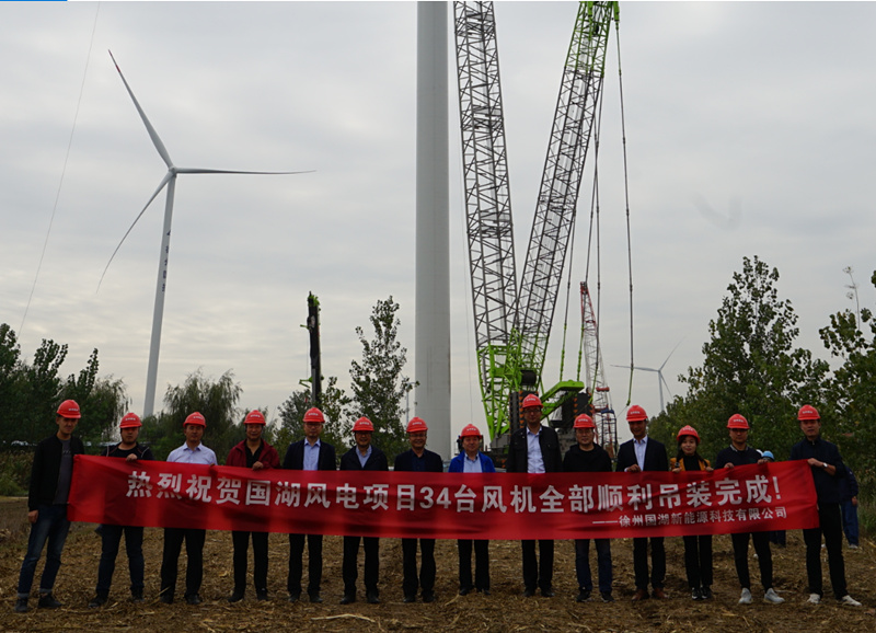 2020年10月7日上午10時(shí)50分,國(guó)湖公司新沂市阿湖鎮(zhèn)一期90MW風(fēng)電項(xiàng)目第34臺(tái)風(fēng)機(jī)順利吊裝完成,標(biāo)志著國(guó)湖風(fēng)電項(xiàng)目風(fēng)機(jī)吊裝圓滿(mǎn)結(jié)束,向?qū)崿F(xiàn)全部機(jī)組并網(wǎng)發(fā)電目標(biāo)乘勝前進(jìn)。集團(tuán)公司黨委書(shū)記、董事長(zhǎng)李曉東,黨委委員、副總經(jīng)理?xiàng)铐g,國(guó)投環(huán)能公司領(lǐng)導(dǎo)班子成員到場(chǎng)觀摩,國(guó)湖公司全體干部職工在場(chǎng)協(xié)調(diào)吊裝并陪同。