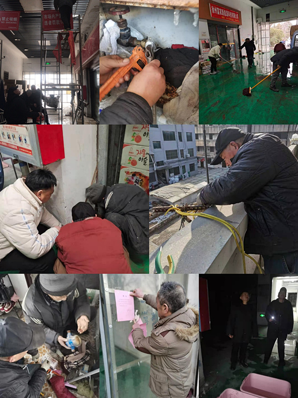 盡管市場(chǎng)已提前做好各項(xiàng)管線保溫措施,同時(shí)多次下發(fā)通知提醒業(yè)戶注意管線防寒保暖。但是在1月6日至11日極寒天氣下,還是出現(xiàn)了眾多管線凍結(jié)堵塞,水表爆裂等情況。市場(chǎng)服務(wù)熱線電話不斷,報(bào)修單呈數(shù)倍增長(zhǎng)。商貿(mào)公司黨支部迅速啟動(dòng)應(yīng)急預(yù)案,從支部書記到普通黨員全員加入搶修隊(duì)伍,確保爆裂管線第一時(shí)間得到搶修,業(yè)主報(bào)修二小時(shí)內(nèi)得到維修。黨員隊(duì)伍和資產(chǎn)管理部全體同志,頂著嚴(yán)寒加快搶修進(jìn)度。在滴水成冰的寒冬里,他們團(tuán)結(jié)協(xié)作、爭(zhēng)分奪秒,與嚴(yán)寒抗戰(zhàn)、與時(shí)間賽跑,高質(zhì)量地完成了搶修任務(wù),受到業(yè)主廣泛好評(píng)。