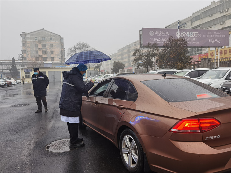 幾位臨床科主任率先垂范,積極參加到預(yù)檢分診工作中。內(nèi)二科朱增武主任,干部?jī)?nèi)科王光宇、范德龍主任,中醫(yī)科張守春主任......他們雖然年紀(jì)不輕,平時(shí)科室管理、業(yè)務(wù)十分繁忙,但為支持疫情防控工作,率先站到了防控一線的崗位上,并用一貫認(rèn)真的工作態(tài)度,仔細(xì)為每一個(gè)進(jìn)入醫(yī)院的患者做好預(yù)檢分診。雨中,朱增武主任一手擎著傘,一手拿著測(cè)溫儀,在車輛入口為司機(jī)進(jìn)行測(cè)溫,只見他身體前傾,把傘靠向開窗接受測(cè)溫的司機(jī),寧可自己淋在雨中。58歲的王光宇主任,患有冠心病、高血壓、腰椎鍵盤突出等疾病,但他毫不猶豫地站到了抗疫一線,每天一站就是幾個(gè)小時(shí)。