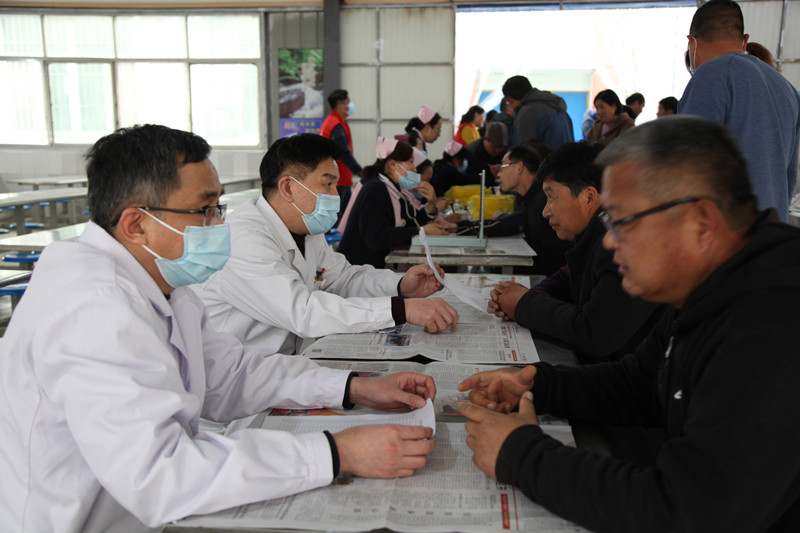 在健康體檢現(xiàn)場,9名醫(yī)務(wù)人員為朱王莊中學(xué)的50多名教師測量了血壓,檢測了血糖、視力,為檢查結(jié)果異常的職工建立了健康檔案,并對(duì)教師們開展了健康宣教,提供了健康咨詢、疾病診治及用藥指導(dǎo),耐心解答他們關(guān)心的健康問題。