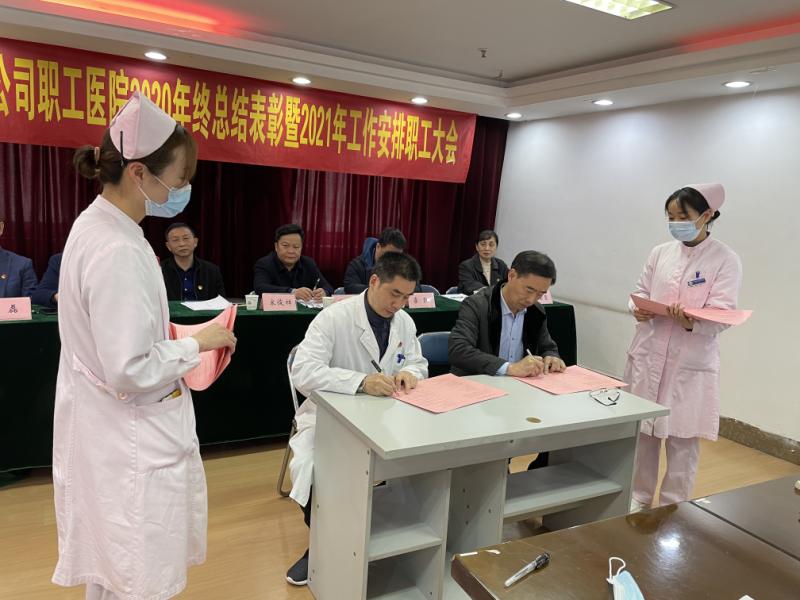 院長陶洪臣對(duì)2020年醫(yī)院工作進(jìn)行了全面、客觀的總結(jié),指出了不足,并對(duì)2021年工作提出了具體要求。醫(yī)院相關(guān)負(fù)責(zé)人宣讀了2020年度先進(jìn)集體、先進(jìn)工作者和優(yōu)秀共產(chǎn)黨員的表彰決定,為獲獎(jiǎng)人員頒發(fā)了獎(jiǎng)牌證書。陶洪臣與各主要臨床醫(yī)技科室簽訂了《2021年綜合目標(biāo)責(zé)任書》。