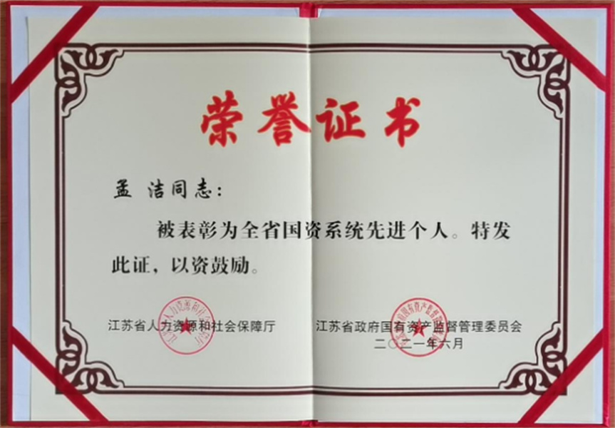 孟潔同志榮獲2021年“全省國資系統(tǒng)先進(jìn)個(gè)人”榮譽(yù)稱號(hào)