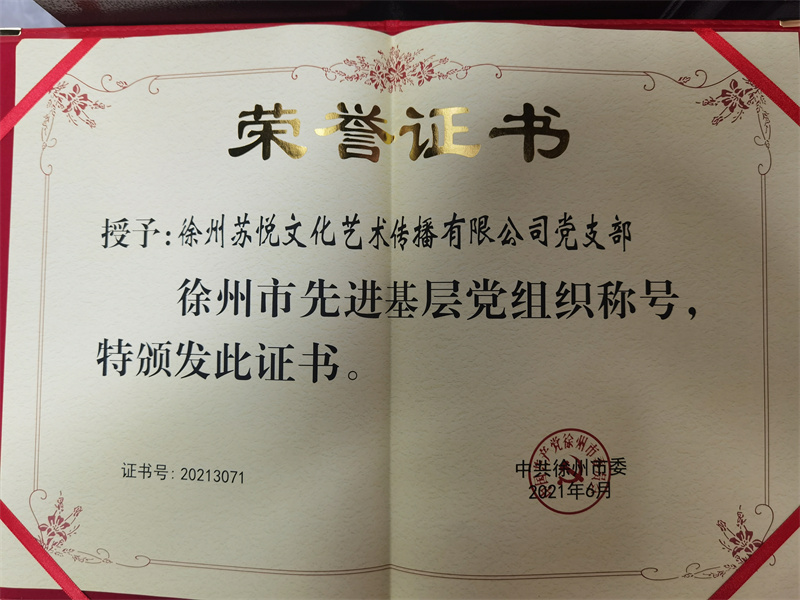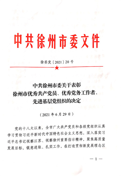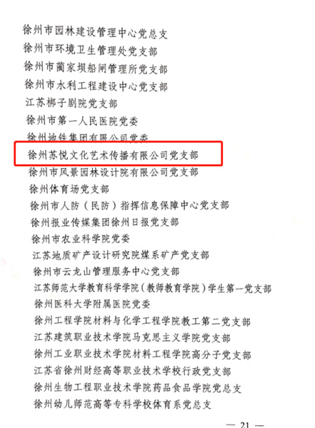 蘇悅黨支部榮獲徐州市“先進(jìn)基層黨組織”榮譽(yù)稱號(hào)
