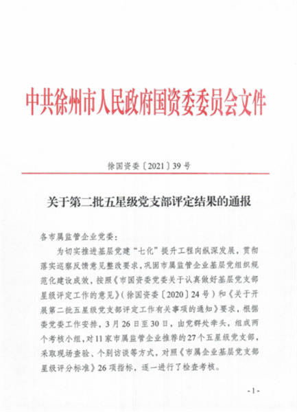 環(huán)能機(jī)關(guān)黨支部、蘇悅黨支部獲市國資委“五星級(jí)黨支部”稱號(hào)
