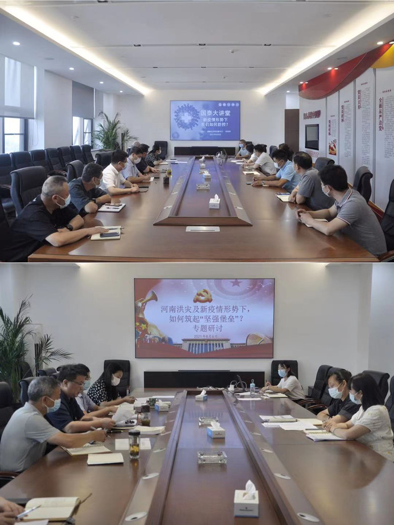 針對酒店、醫(yī)院等重點防控單位,由國泰投資黨總支副書記宋俊祥開展了“新疫情形勢下,我們?nèi)绾畏揽亍钡谖迤趪┐笾v堂,針對此次疫情特點,具體部署單位、個人防控管理舉措,推動疫情防控工作更精準高效。在之后召開的黨支部書記例會上,各級黨組織負責(zé)同志就“新疫情形勢下如何筑起“堅強堡壘”進行專題研討會。黨總支書記霍凱強調(diào),在全面梳理疫情防控管理工作流程,全程聚焦關(guān)注重點難點環(huán)節(jié),規(guī)范各項防控措施的基礎(chǔ)上,充分發(fā)揮各基層黨組織戰(zhàn)斗堡壘作用和廣大黨員先鋒模范作用,全面落實各項防控制度與措施的實施,同時加強基層黨組織的服務(wù)與監(jiān)督職能,是當下疫情防控工作的關(guān)鍵。