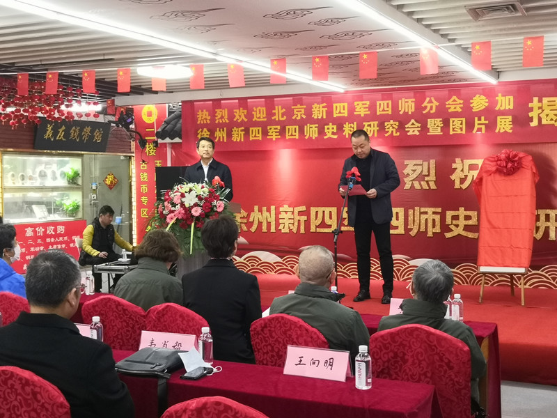 下午2點,揭牌儀式在徐州古玩城正式舉行。原國務院副總理鄧子恢之女鄧小燕、原中國人民解放軍總參謀長、中共中央書記處書記黃克誠之子黃旭、原中國人民解放軍總政治部主任、中共中央軍委常委韋國清之子韋肖毅等老一輩革命家、新四軍的后代參加了本次活動。