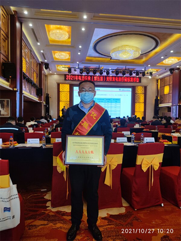 按照《全國太陽能光伏發(fā)電站生產(chǎn)運(yùn)行指標(biāo)對標(biāo)評比管理辦法(試行)》的相關(guān)要求,中國電力企業(yè)聯(lián)合會科技開發(fā)服務(wù)中心對2020年度全國光伏發(fā)電生產(chǎn)運(yùn)行指標(biāo)進(jìn)行了統(tǒng)計(jì),通過對電量指標(biāo)、能耗指標(biāo)、設(shè)備運(yùn)行水平指標(biāo)進(jìn)行綜合評價(jià)、數(shù)據(jù)公示及最終評審等程序,國投環(huán)能公司所屬宿州光伏電站從43家發(fā)電集團(tuán)、1613家光伏電站中脫穎而出,當(dāng)選為華東地區(qū)安徽省唯一一家5A級光伏電站。會上,中國電力企業(yè)聯(lián)合會院長黃成剛先生為宿州光伏電站頒獎(jiǎng)。