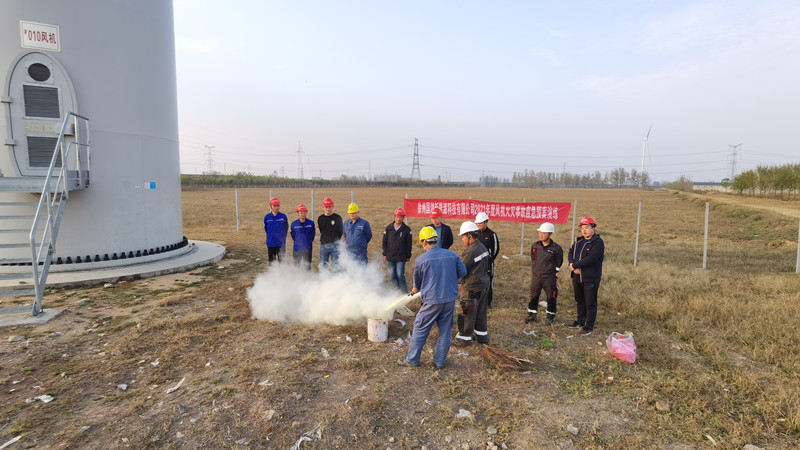 會議就進(jìn)一步做好秋冬季安全工作,加強(qiáng)第四季度安全生產(chǎn)、疫情防控和應(yīng)急管理等重點(diǎn)工作進(jìn)行了部署和安排,確保迎峰度冬和安全生產(chǎn)。為有效提高工作人員處置秋冬季火災(zāi)突發(fā)事件的能力,確保人員安全及風(fēng)機(jī)安全穩(wěn)定運(yùn)行,會后組織開展了秋冬季火災(zāi)事故的應(yīng)急演練。