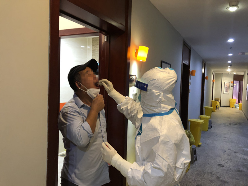 每入駐一名境外人員,工作組要進行人員接駁,入隔宣教,信息采取、錄入、上傳,健康監(jiān)測,標本采樣和呈送,清潔消毒,廢棄物回收和處理,終末消毒等防控工作,以及送餐供應,各項報表,費用管理,物資管理和供應,人文關懷,錄像監(jiān)測,客房管理等后勤服務工作。事無巨細,缺一不可。由于臨近春節(jié),隔離點接待境外人員很多,他們各自情況不同,入駐時間不分早晚。工作組不分白天黑夜處于工作狀態(tài),每天夜里都要迎接隔離者,一天休息不足6個小時,基本上沒有好好休息過一個夜晚。每天都是超負荷在工作,但他們憑著強大的信念,一直保持著昂揚的斗志。