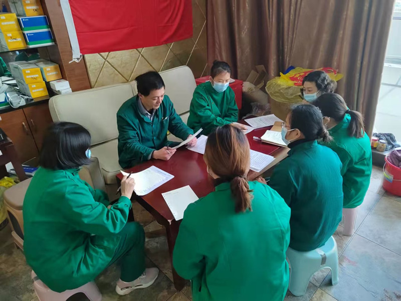 由于隔離點防控工作首次全部由醫(yī)務人員承擔,沒有經(jīng)驗可循,進入隔離點后,工作中人員在點位長汪儲送帶領下,立即召開工作會議,探討工作方案,梳理工作流程,分配工作任務。大家各領任務,各司其職,擔起了隔離點所有隔離人員的防控及服務工作。