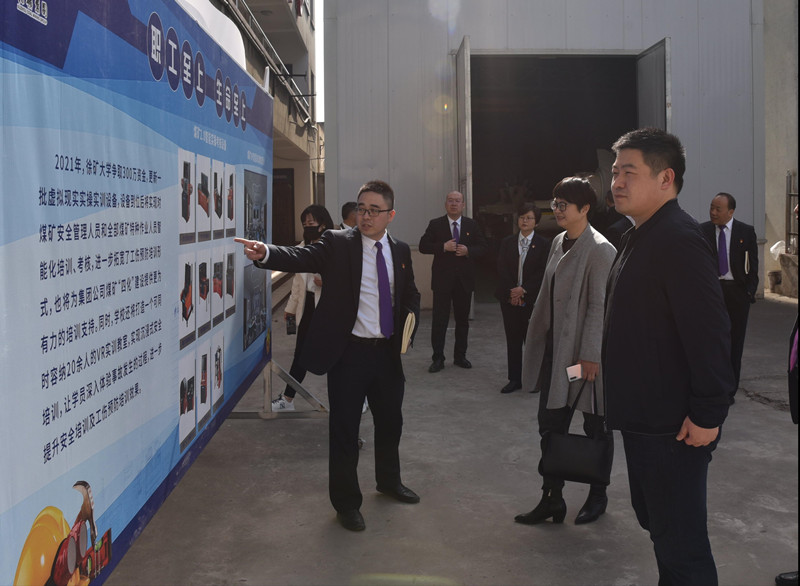 喬毅一行詳細了解了徐礦大學(xué)辦訓(xùn)條件、師資隊伍、培訓(xùn)項目、培訓(xùn)品牌、培訓(xùn)服務(wù)等情況,并參觀了徐礦大學(xué)VR教室、工傷預(yù)防展室等實操實訓(xùn)場所,體驗了相關(guān)設(shè)施設(shè)備,充分認可徐礦大學(xué)辦學(xué)辦訓(xùn)的特色優(yōu)勢。