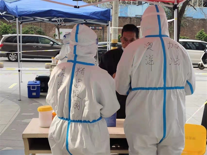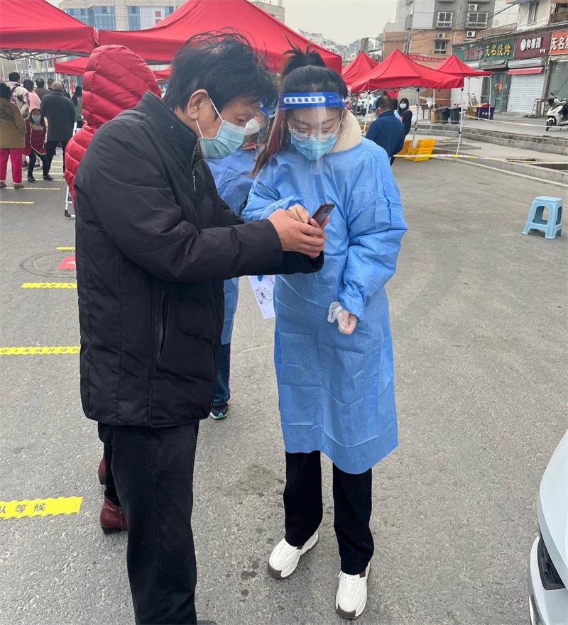 “叮叮叮……”早上5點鐘,鬧鈴急促地響起,國泰投資95后青年團(tuán)員戚圓圓看了一眼手機(jī),便快速起床,按照前一天志愿服務(wù)群里的安排急匆匆走向核酸檢測點,開始了新一天的志愿服務(wù)。雖然是公司年齡最小的志愿者,但她從5號開始已連續(xù)4天,穿著防護(hù)服進(jìn)行核酸采樣信息錄入、試管樣本遞送、維持隊列秩序、上門采集黃碼信息。每天從6點到下午3點,持續(xù)高強(qiáng)度工作9個小時,即便如此,她依然是干勁十足。她說“社區(qū)還有70多歲的爺爺奶奶加入了志愿者隊伍,我這么年輕,出點汗、出點力沒事兒,能夠與白衣天使們并肩作戰(zhàn),用自己的青春守護(hù)著家園,我感到非常自豪。”