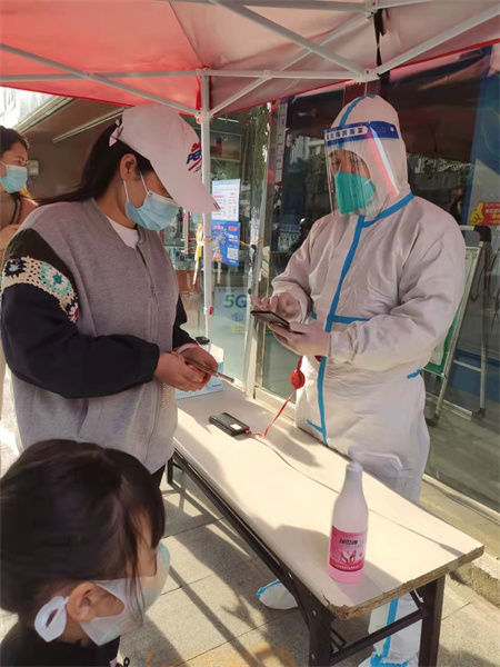他第一時(shí)間報(bào)名參加子房街道王杰社區(qū)志愿者,4月2日,接到任務(wù)負(fù)責(zé)“黃碼”人員的核酸檢測信息登記工作。起初心里略過一絲緊張,擔(dān)心自己也變成“黃碼”,但轉(zhuǎn)念想到自己是一名黨員,黨員就是旗幟,黨徽就是鏡子,要發(fā)揚(yáng)出“越是艱險(xiǎn)越向前”的精神。于是他毅然穿上防護(hù)服走上工作崗位,在專業(yè)人員的指導(dǎo)下,很快勝任了工作。以后的每一天他都堅(jiān)守在“黃碼”檢測信息登記的崗位上。