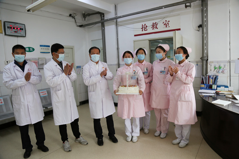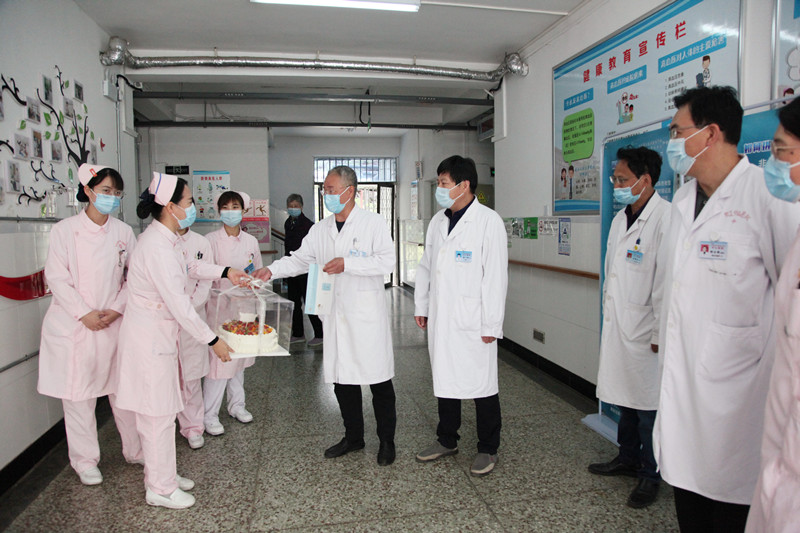 5月12日上午,院領(lǐng)導(dǎo)分成兩組,分別在黨委書記孫守訪、院長(zhǎng)張心海帶領(lǐng)下,帶著定制的節(jié)日蛋糕來(lái)到臨床一線,慰問(wèn)堅(jiān)守崗位的護(hù)理姐妹們。每到一處病區(qū),院領(lǐng)導(dǎo)向她們送上誠(chéng)摯的節(jié)日祝福,感謝她們對(duì)醫(yī)院護(hù)理工作的付出,叮囑她們?cè)谧龊霉ぷ鞯耐瑫r(shí),也要做好自身防護(hù),保重身體健康。護(hù)士們特別開心,紛紛感謝醫(yī)院的關(guān)愛,表示將遵守南丁格爾誓言,一如既往獻(xiàn)身護(hù)理工作,為患者減輕痛苦、促進(jìn)康復(fù),為醫(yī)院發(fā)展貢獻(xiàn)力量。